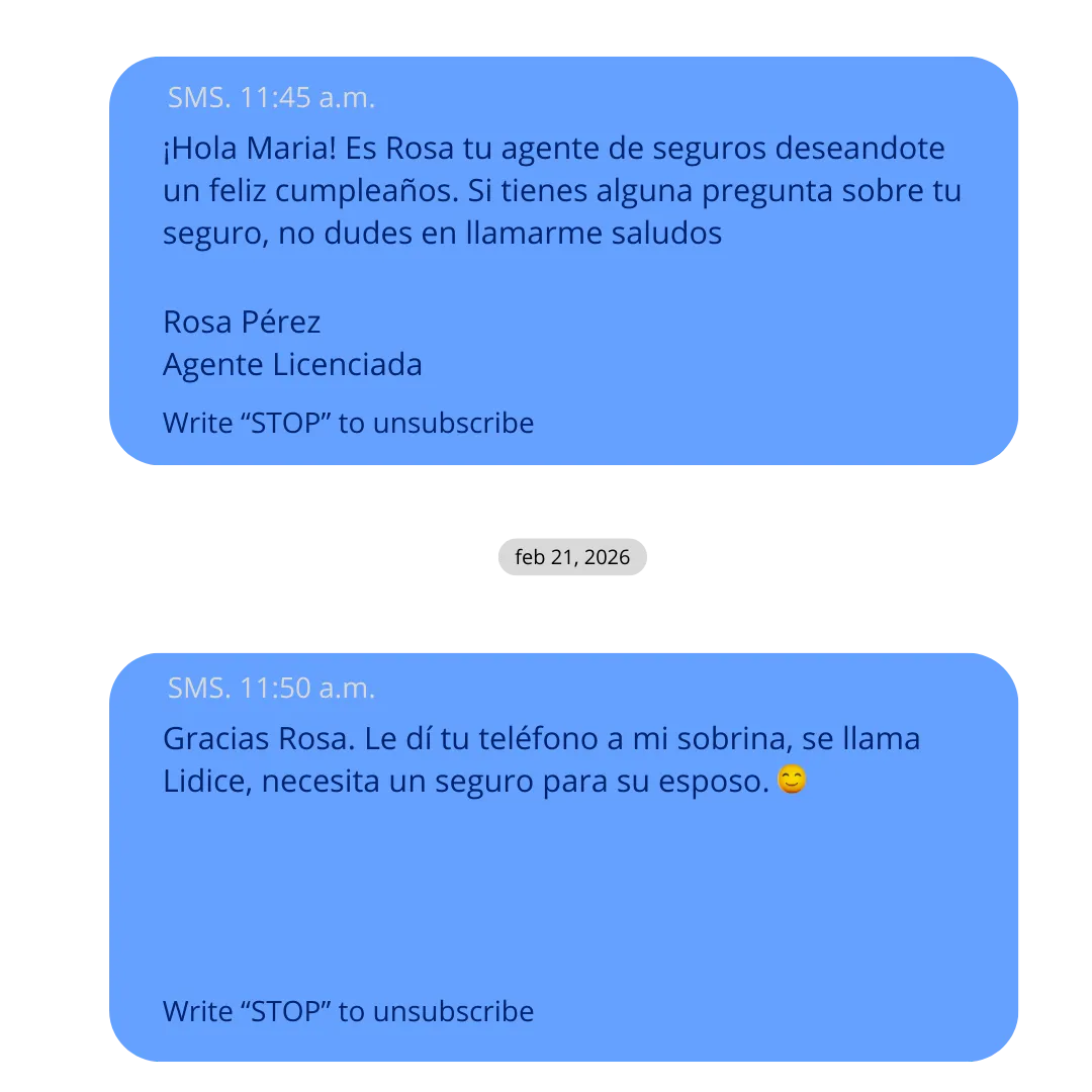 El mensaje integrado que hace que los clientes regresen, te recomienden y digan “gracias por pensar en mí”. Sin que tengas que recordar fechas o buscar notas.