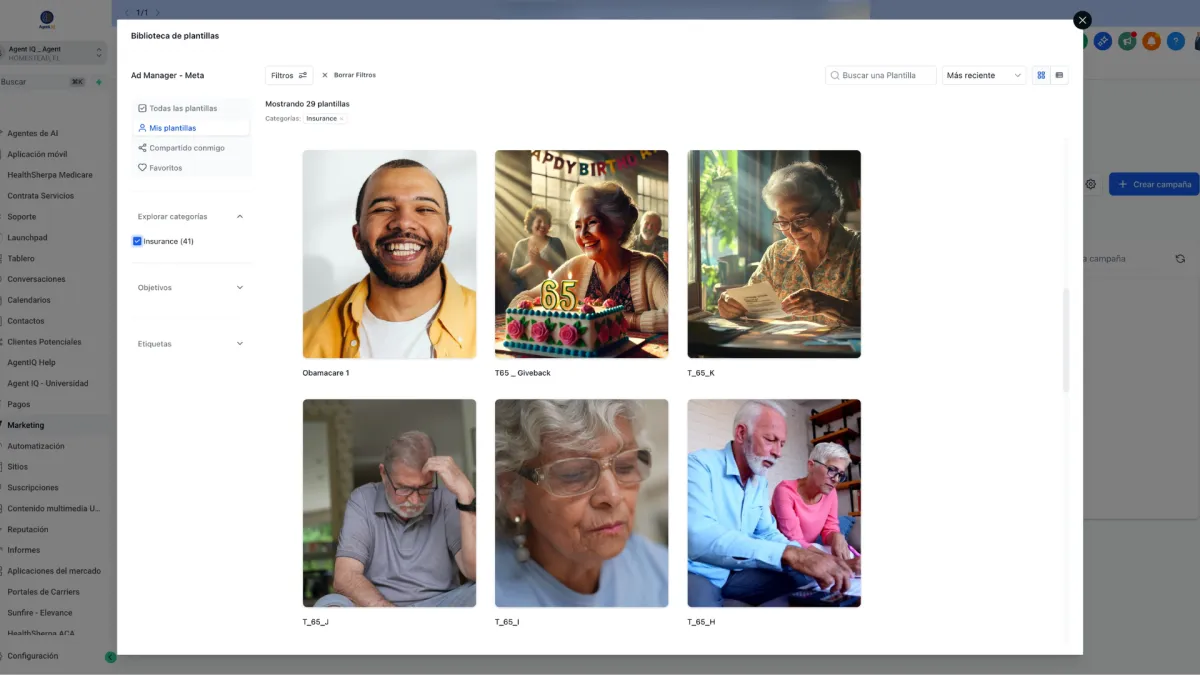 Automatizas anuncios en redes, con +40 plantillas de Medicare, ACA, Suplementarios y Vida. Empieza a cerrar más rápido.